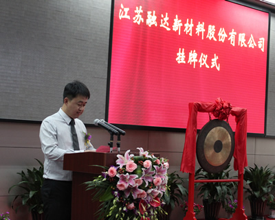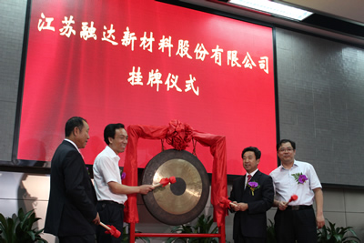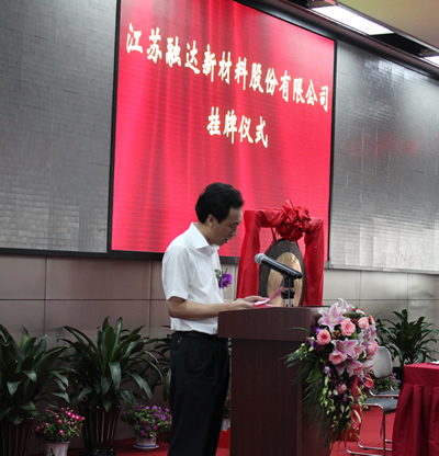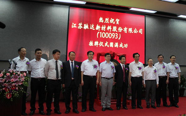 2013年8月30日,江蘇融達新材料股份有限公司在上海股權托管交易中心成功掛牌,成為如皋市第一家在上海股權托管中心掛牌交易的中小企業(yè)。南通市政協(xié)副主席徐守銘、如皋市市委書記姜永華、如皋市人民政府主席陳曉東、上海股權托管交易中心總經理張云峰等人此次出席了掛牌儀式。